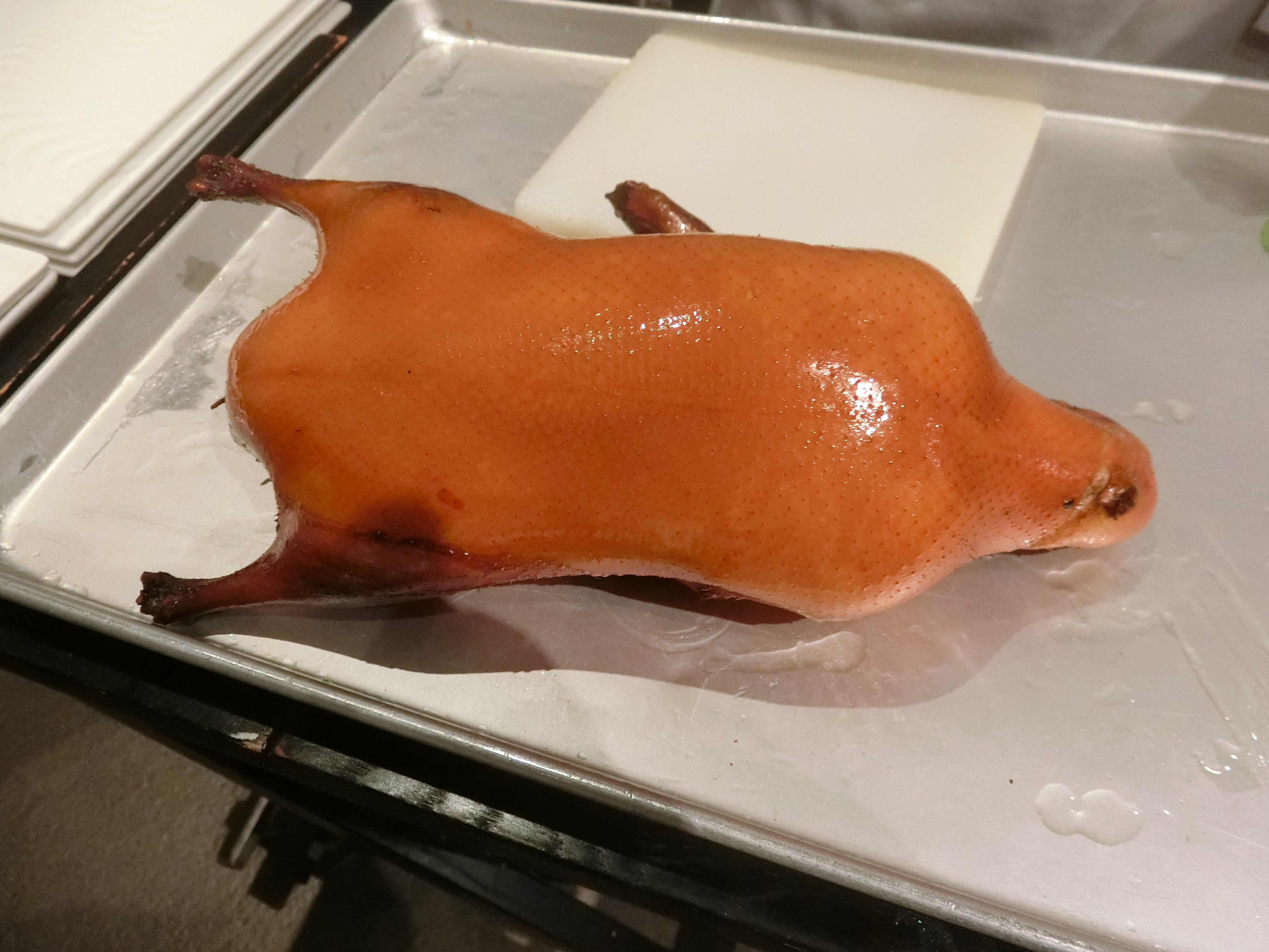 大きな学会の目玉の一つとして講演に来てほしいという海外からの依頼は頻繁に受け取るのですが、基本的に断っています。長い時間飛行機に乗り、現地で時差に苦しみながら1時間ほどの講演をして、また長い時間飛行機に乗るのが苦痛だからです。今回ほとんど知り合いのいない大きな学会に来ても、話し相手もいなくて寂しい思いをするだけだというのを再確認することができました。ただし今回は共同研究者と論文について議論できたこと、30日に突然招かれた会長招宴ディナーで日本腎臓学会会長ご夫妻 (お二人とも岡山県玉野市ご出身) と親しくお話しできたのは収穫でした。上の写真は、このディナーでたっぷりいただいた北京ダック。大会長がカラオケ好きだそうで、残れと言われたのですが、翌朝早くからの講演ですので、早々に退散しました。皆さん、強いマオタイ酒をガンガン飲まれていましたが、私はビールに抑えておきました。寝坊したら大変です。