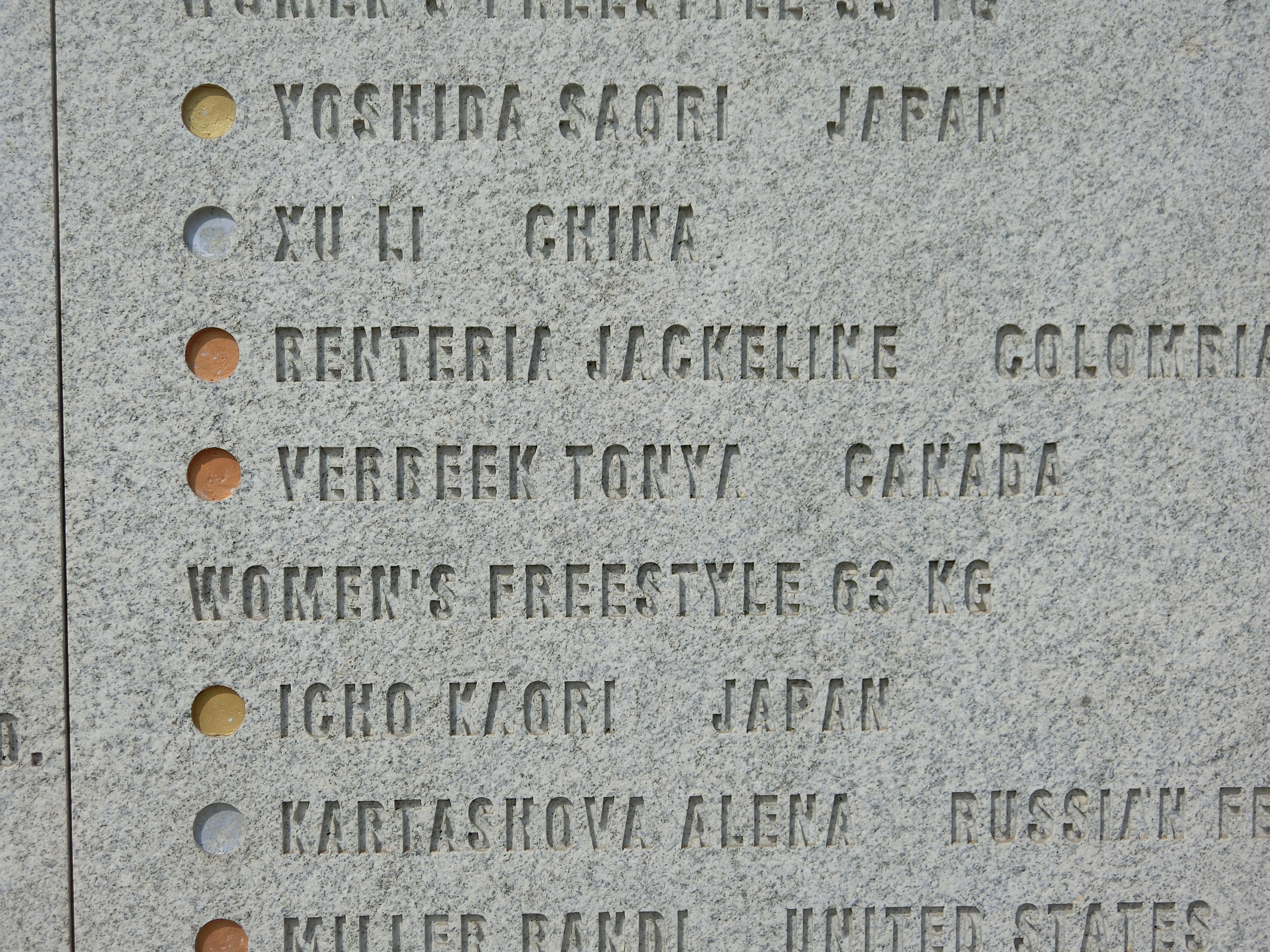 29日の夜遅く着いたので、30日の午前中はゆっくりと過ごし、午後からホテルと会場が隣接しているオリンピック公園を (講演のイメージトレーニングをしながら) 散策しました。巨大です (写真上左、上中)。開閉会式が行われた鳥の巣スタジアム (写真上右) のそばに石の壁があり、北京オリンピックのメダリスト名が全て刻まれていました (写真下左)。ソフトボールの金メダルと (写真下中)、最近話題の伊調馨さんと吉田沙保里さんの金メダルを見つけました (写真下右)。