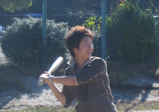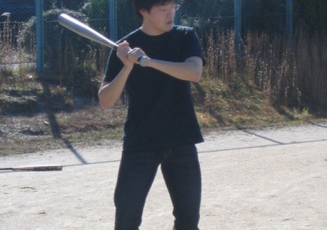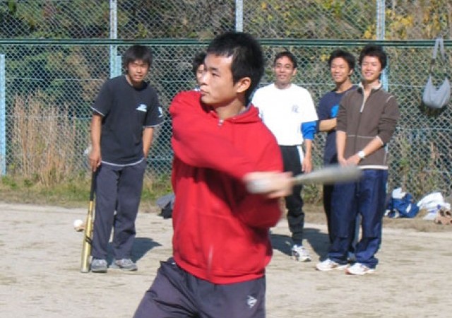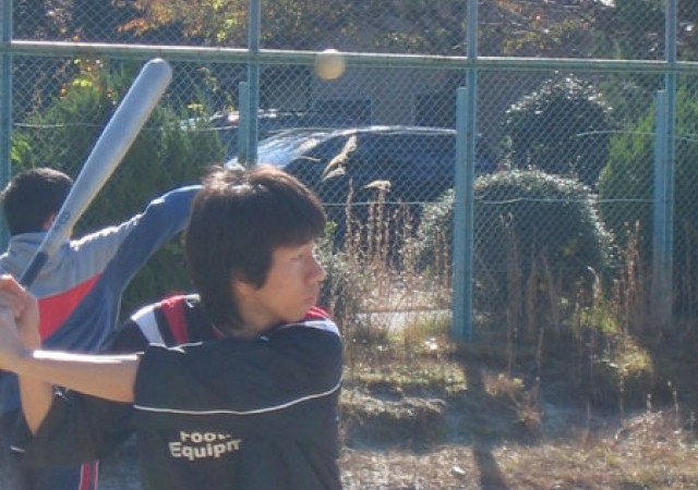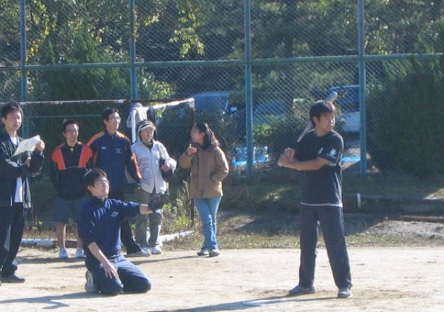 11月とあって早朝はかなり冷え込んだのですが、日中は気温もあがりソフト日和になりました。写真左から蜷川くん、奥くん、奥上くん
