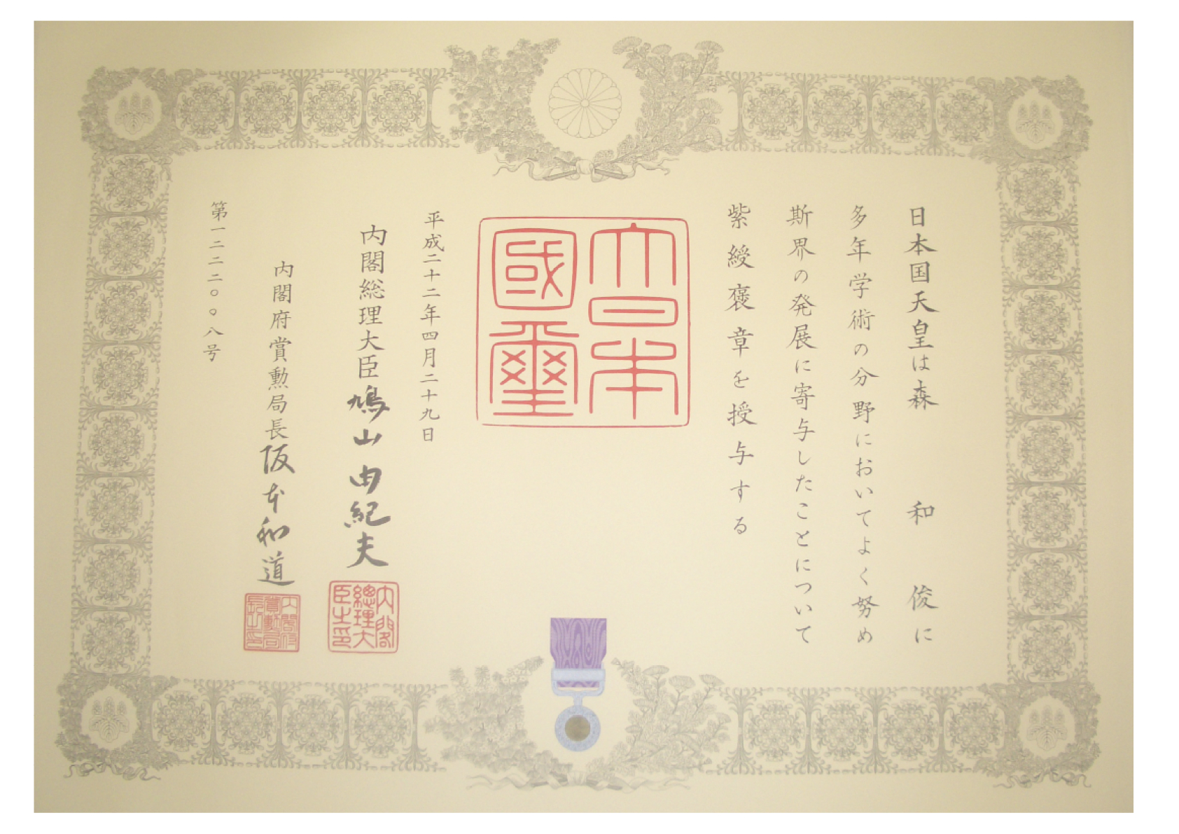 森教授 2010 紫綬褒章受章