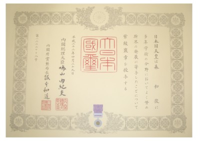 我が国の学術、科学技術、芸術等の向上発展のため顕著な功績をあげた方に送られる紫綬褒章が